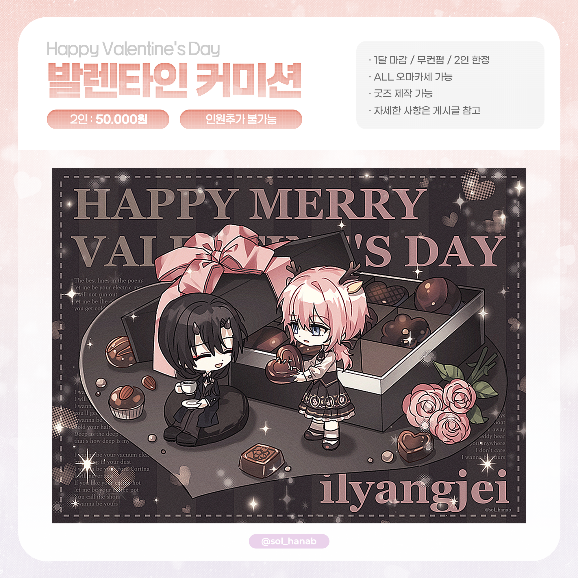 3.사용처, 마감기한 (필요시에만 작성) 프로필 이미지, 커플 사이트, 웹사이트에 재업로드 등 비상업적 용도 이용, 소량 굿즈 제작 (굿즈 제작에 대한 내용은 커미션 게시글을 참고) ↑ 의 사용처를 벗어날 경우에만 적어주세요! (비우실 경우 위 사항을 벗어나지 않는 개인적 사용으로 이해)