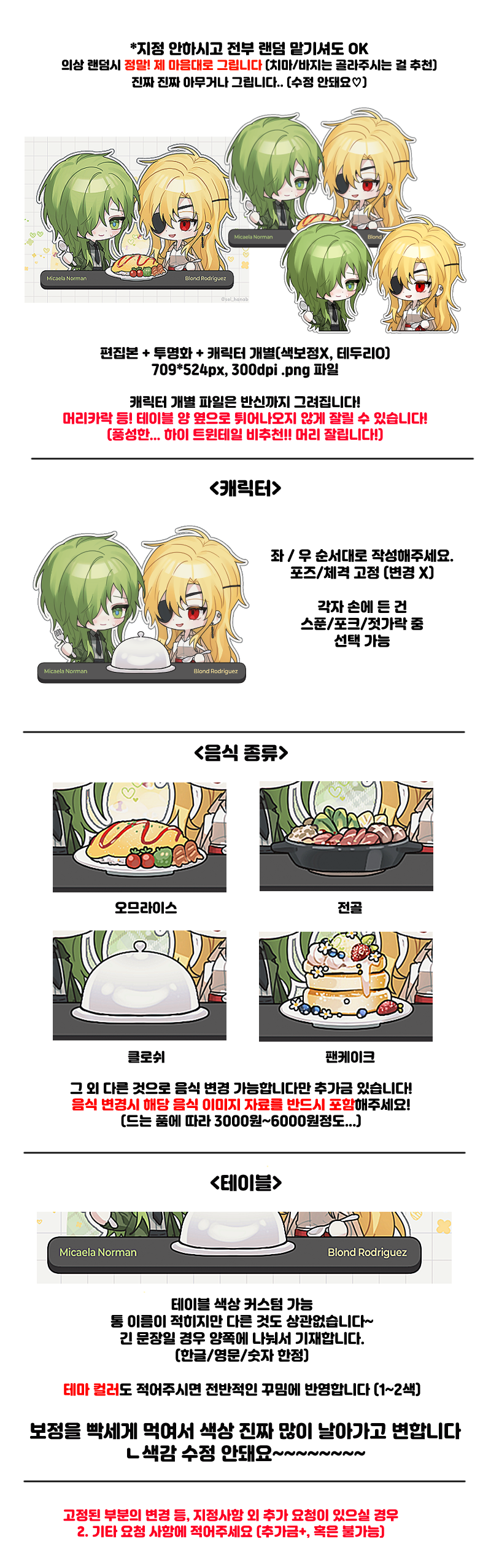<캐릭터> 좌>우 순서대로 기재 부탁드립니다.